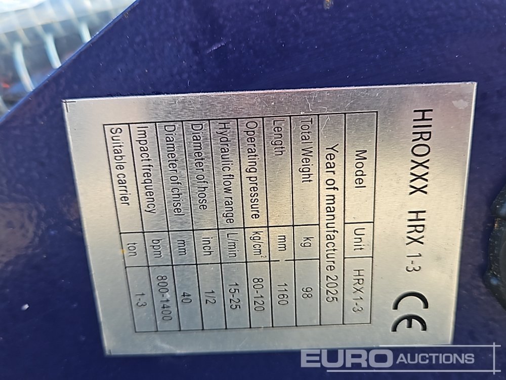 Unused 2025 Hirox HRX1-3 Hydraulic Breaker 25mm Pin to suit Mini Excavator - 140495694