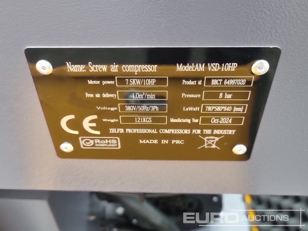 Unused 2024 Zelfir AM VSD-10HP 380Volt Compressor - BBCT64997020