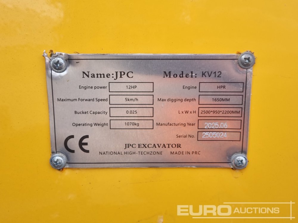 Unused 2025 JPC KV12 Rubber Tracks, Blade, Piped, BM-10 Hydraulic Breaker - 2505024