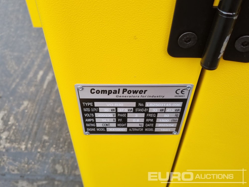 Unused 2025 Compal Power VG-R30 41kVA Generator, 4 Cylinder Engine - 140495855