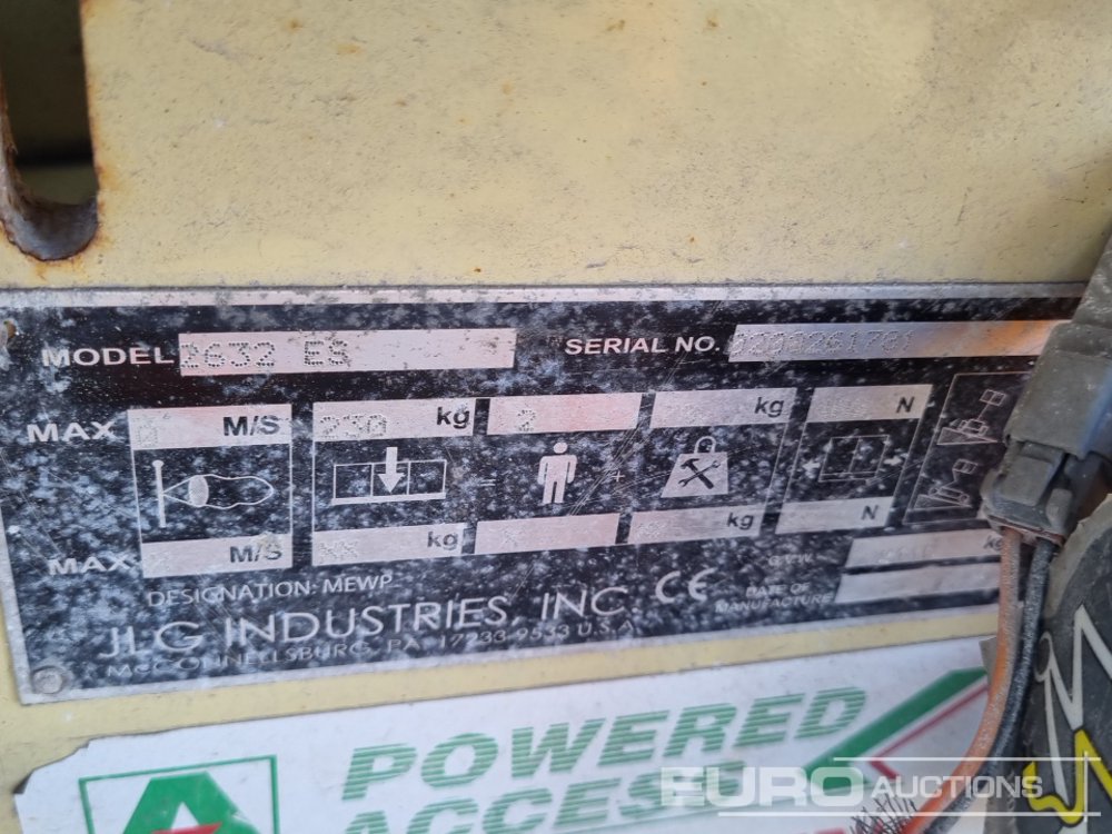 2017 JLG 2632ES Electric Scissor Lift, 9.6m Working Height, 227kg Platform Capacity, Extending Deck, Non Marking Tyres - 0200261781