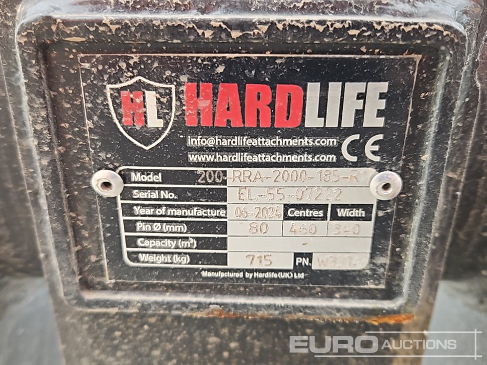 Unused Hardlife 80" Rake 80mm Pin to suit 20 Ton Excavator - 140495901