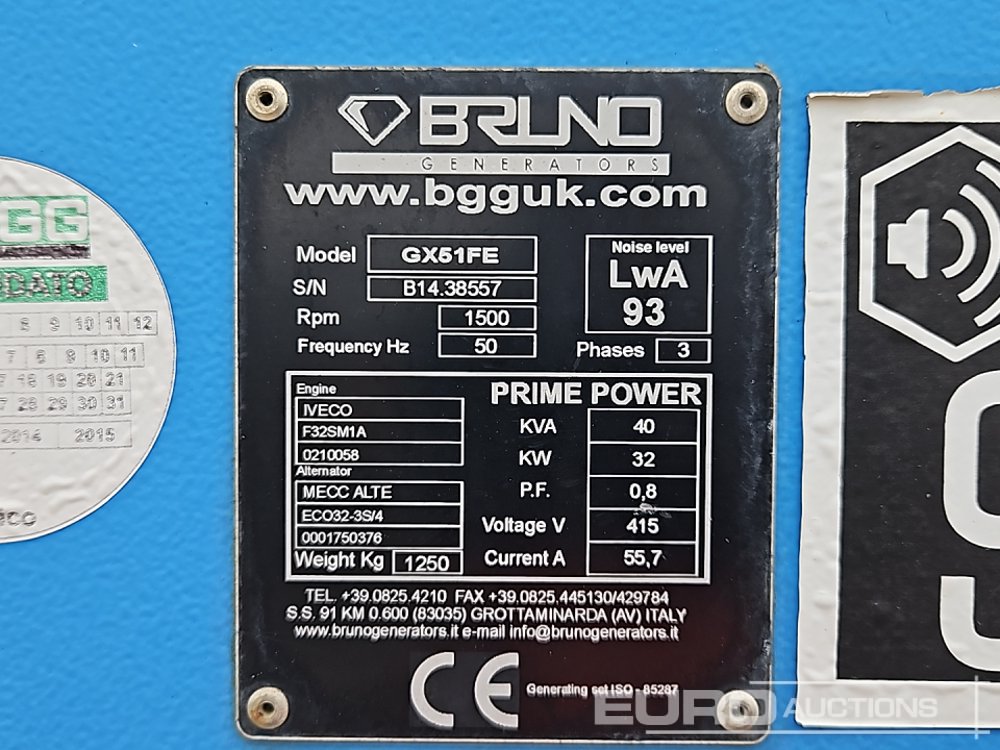 2014 Bruno GX51FE 40kVA Generator, 4 Cylinder Engine - B1438557