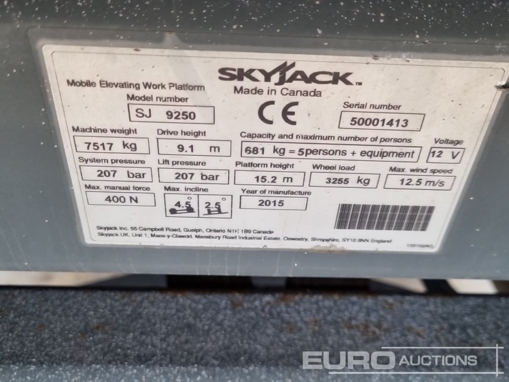 2015 SkyJack SJ9250