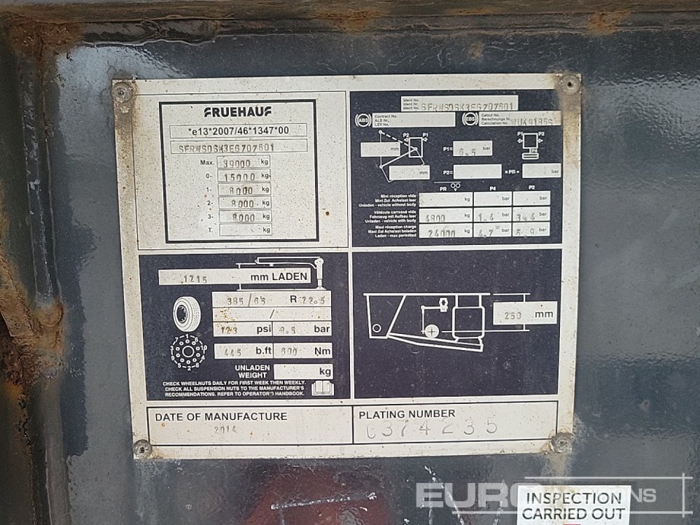 2014 Fruehauf Tri Axle Bulk Tipping Trailer, Easy Sheet