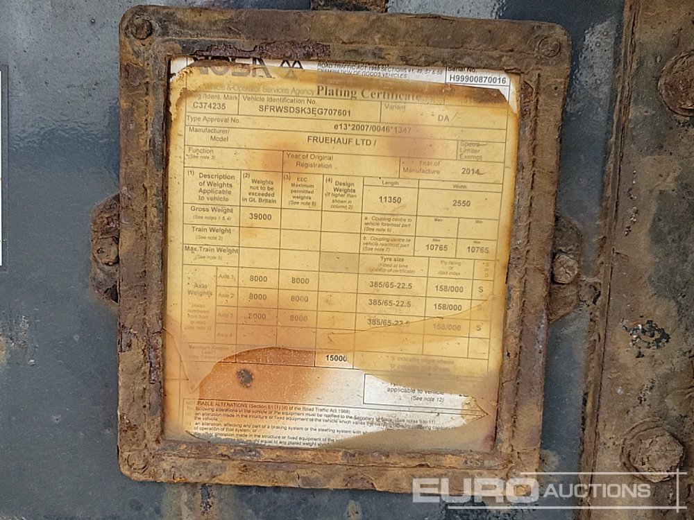 2014 Fruehauf Tri Axle Bulk Tipping Trailer, Easy Sheet - SFRWSDSK3EG707601