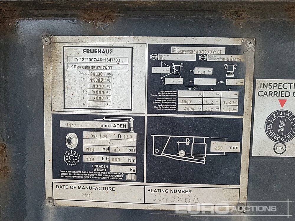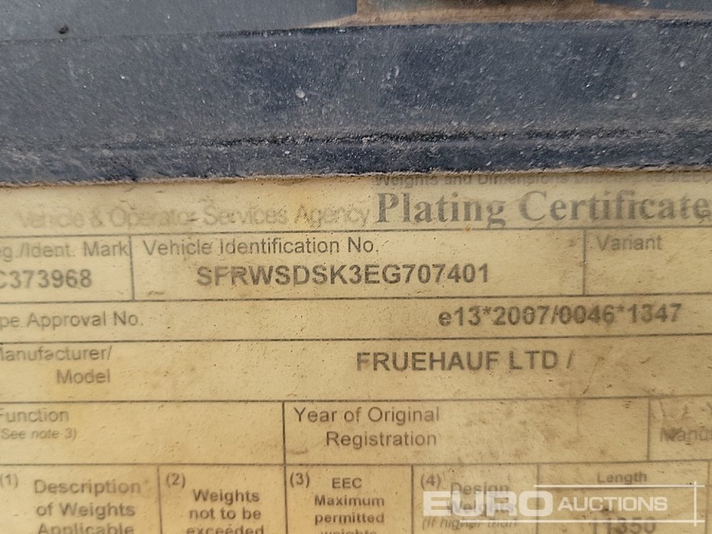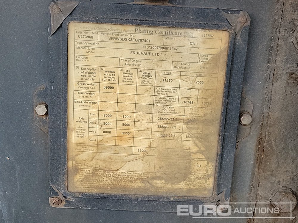 2014 Fruehauf Tri Axle Bulk Tipping Trailer, Easy Sheet