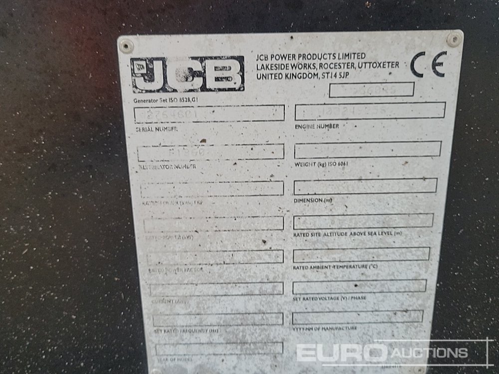 2020 JCB G60RS 60kVA Generator, 4 Cylinder Engine - 2764601