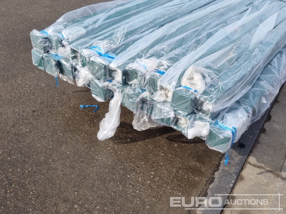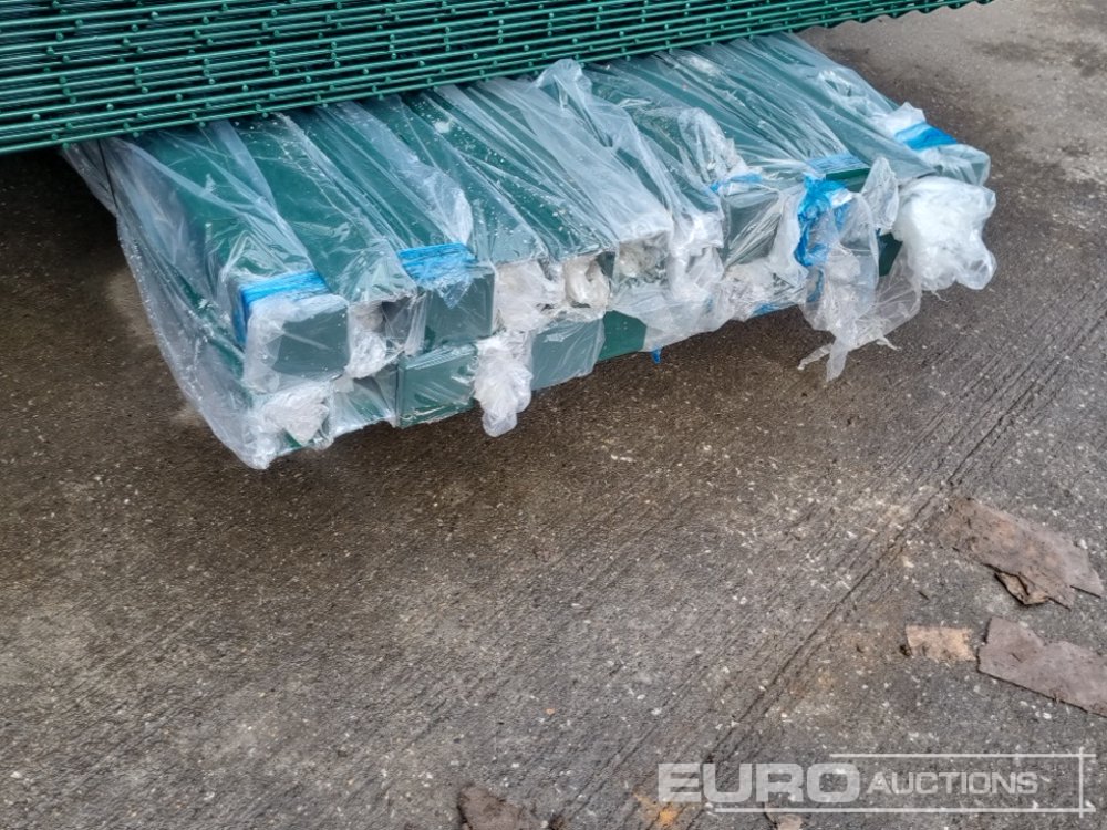 Unused Galvanised & Powder Coated Heavy Duty (5mm) Wire Mesh Fencing, 25 x H2.4m x W2.2m Panels, 26 x 60mm x 60mm x3m Posts, with Fittings (Green) - 496568