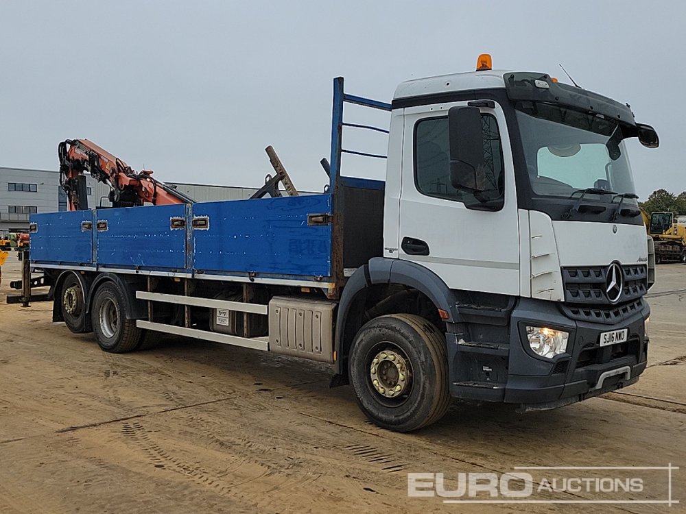 2016 Mercedes Arocs 6x2 Dropside Flat Bed Lorry, Rear Lift, Rear Mounted Atlas 165.2 Loading Crane, Kinshofer Rotating Block Grab, Reverse Camera, A/C, Automatic Gearbox (Reg. Docs. & Plating Certificate Available) - SJ16 NWO - WDB96402020029275