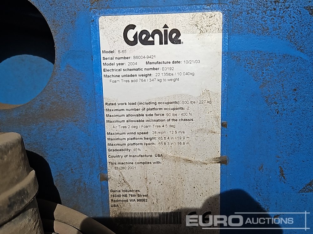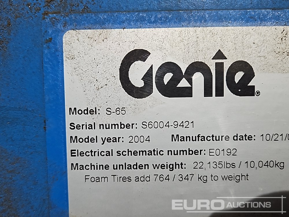 Genie S65 4x4 Diesel Boom Lift Access Platform, 21.8m Working Height, 227kg Platform Capacity - S6004-9421