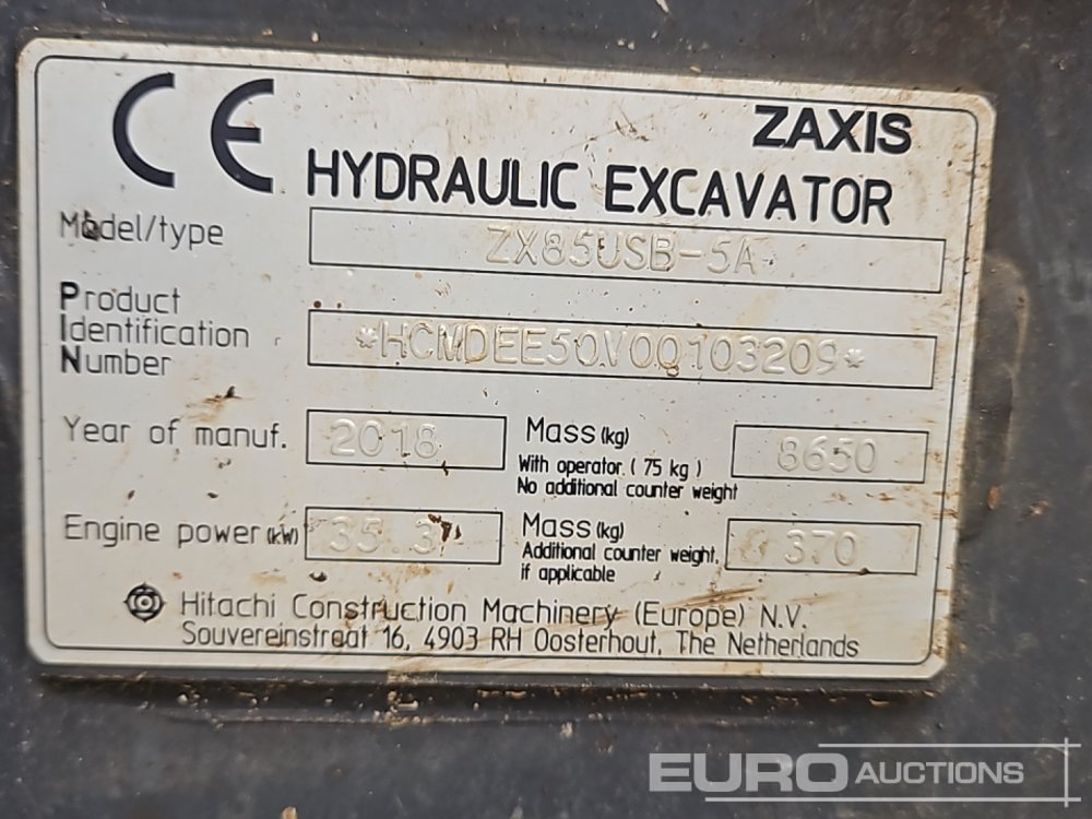 2018 Hitachi ZX85USB-5A