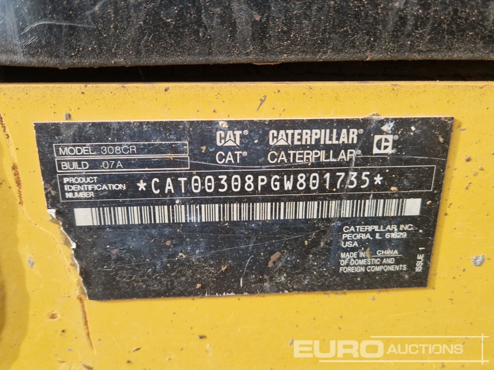 2021 CAT 308CR 450mm Rubber Block Pads, Blade, Offset, CV, QH, Piped, Aux. Piping, Reverse Camera, A/C - CAT00308PGW801735