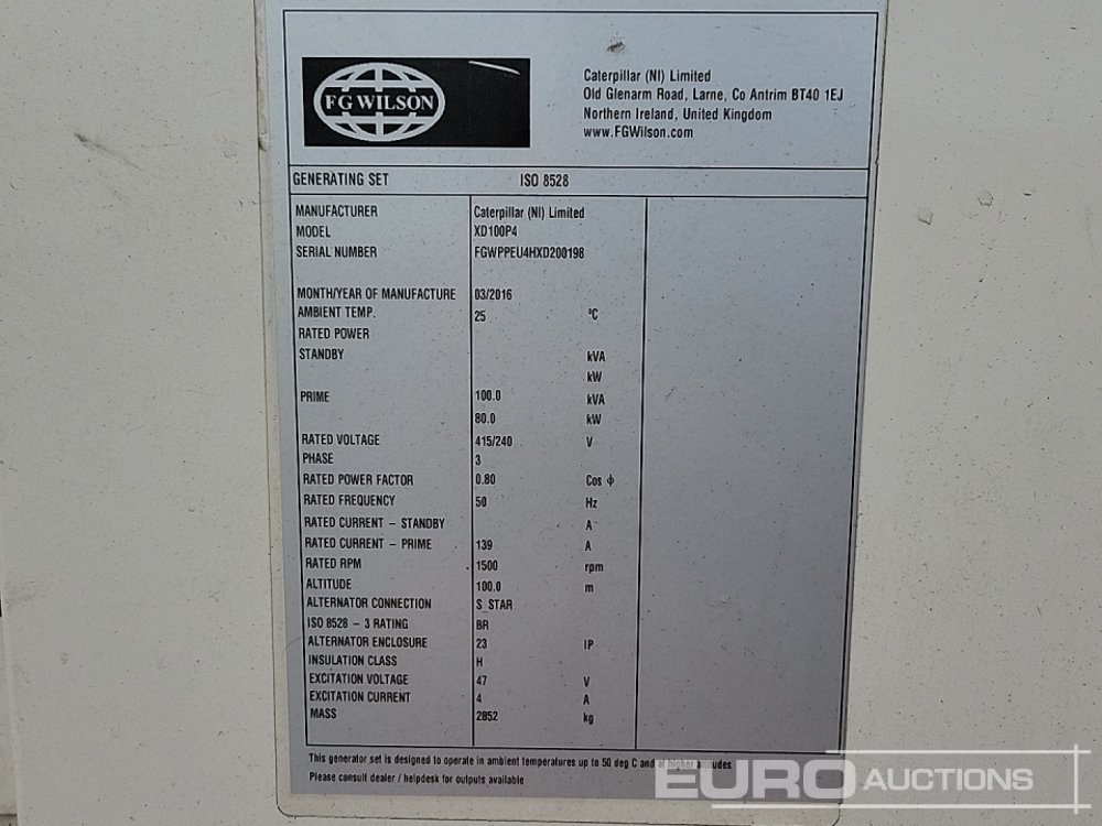 2016 FG Wilson XD100P4