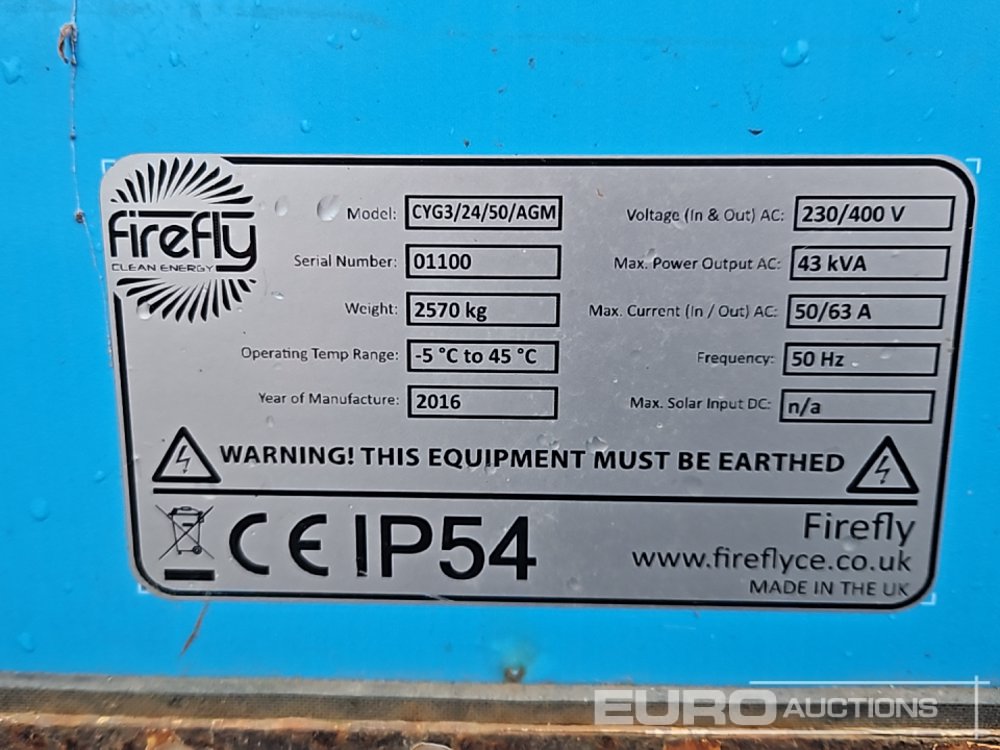 2016 Firefly CYG/24/50/AGM 43kVA Powerbank (Panel Missing, No Batteries) - 01100