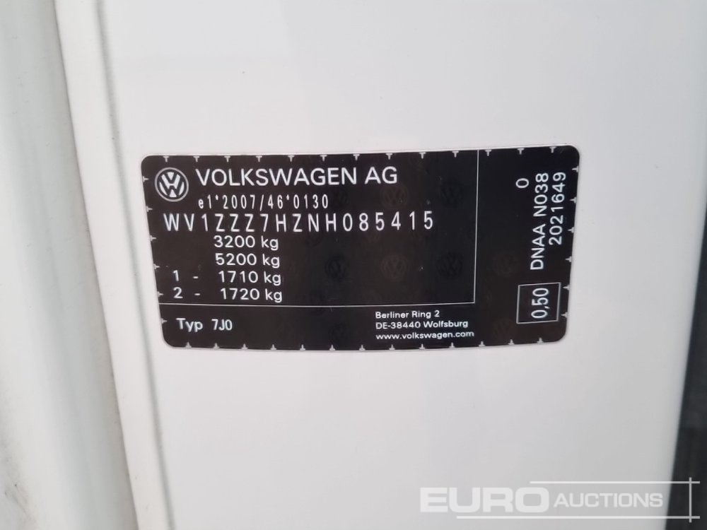 2022 Volkswagen Transporter T32 6 Speed Van, Side Door, Cruise Control, Bluetooth, A/C, Parking Sensors (Tested 06/26) - WR22 UMF - WV1ZZZ7HZNH085415