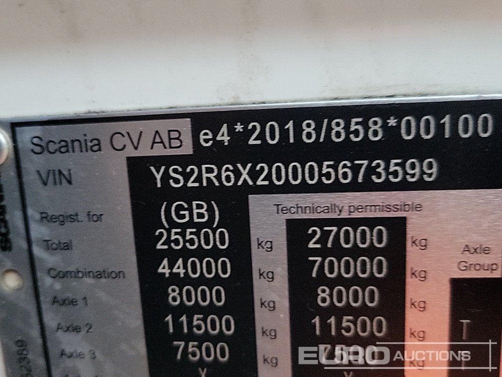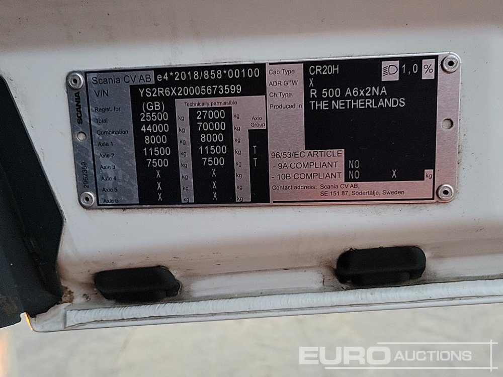 2022 Scania R500 6x2 Rear Lift, Single Hydraulics, Tipping Gear, Walking Floor Gear, 3 Way Camera, A/C, Automatic Gearbox (Reg. Docs. Available Tested 12/2025) - PN72 ECW - YS2R6X20005673599