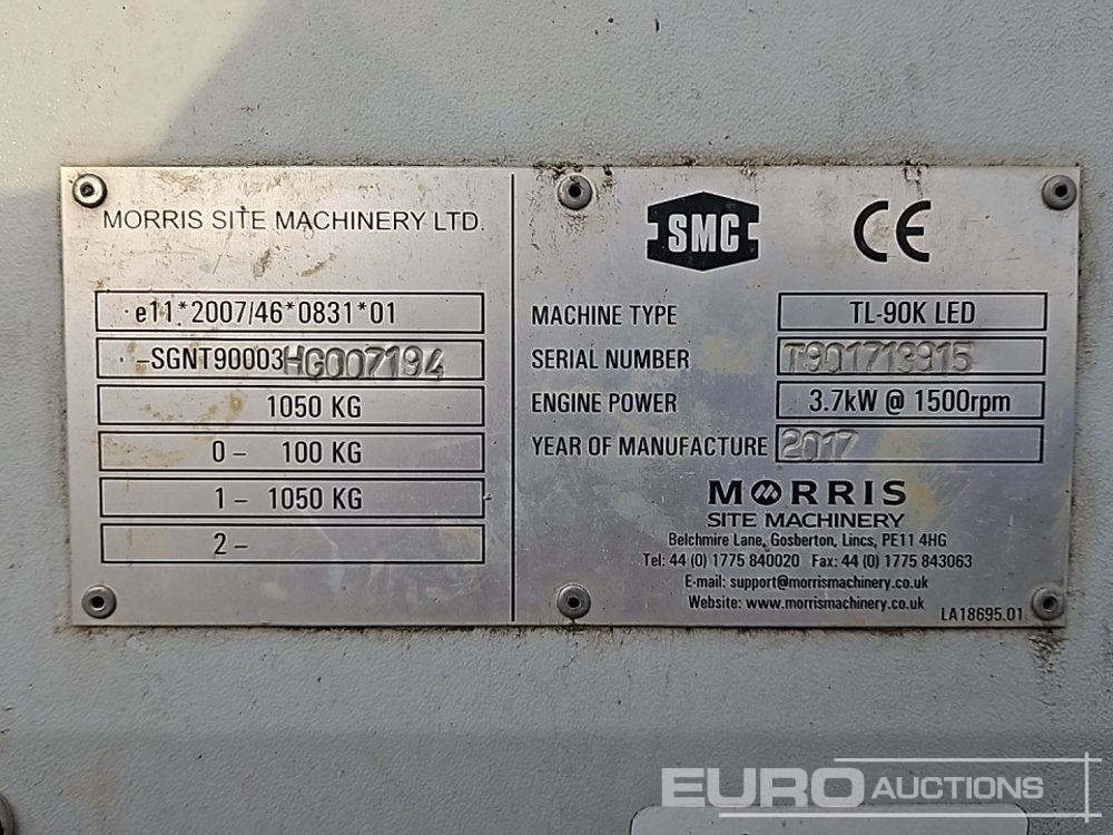 2017 SMC TL-90K LED Single Axle LED Lighting Tower, Kubota Engine - T901713915