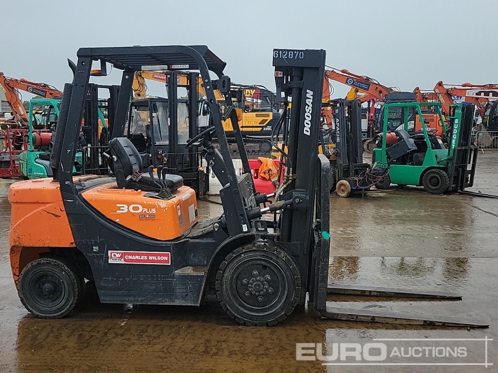 2020 Doosan D30GP Diesel Forklift, 3 Stage Free Lift Mast, Side Shift, Forks - FDA0D274014930