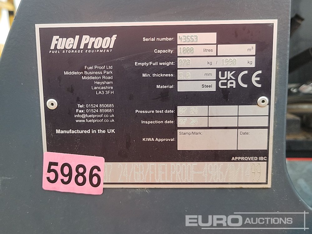 2024 Fuel Proof Twin Axle 1000 Litre Bunded Diesel Bowser, 200 Litre Bunded AdBlue Bowser, Electric Pump (2 of), Flow Meter (2 of) - 43553