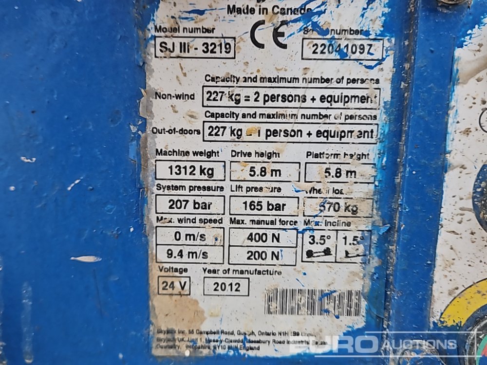 2012 SkyJack SJ3219