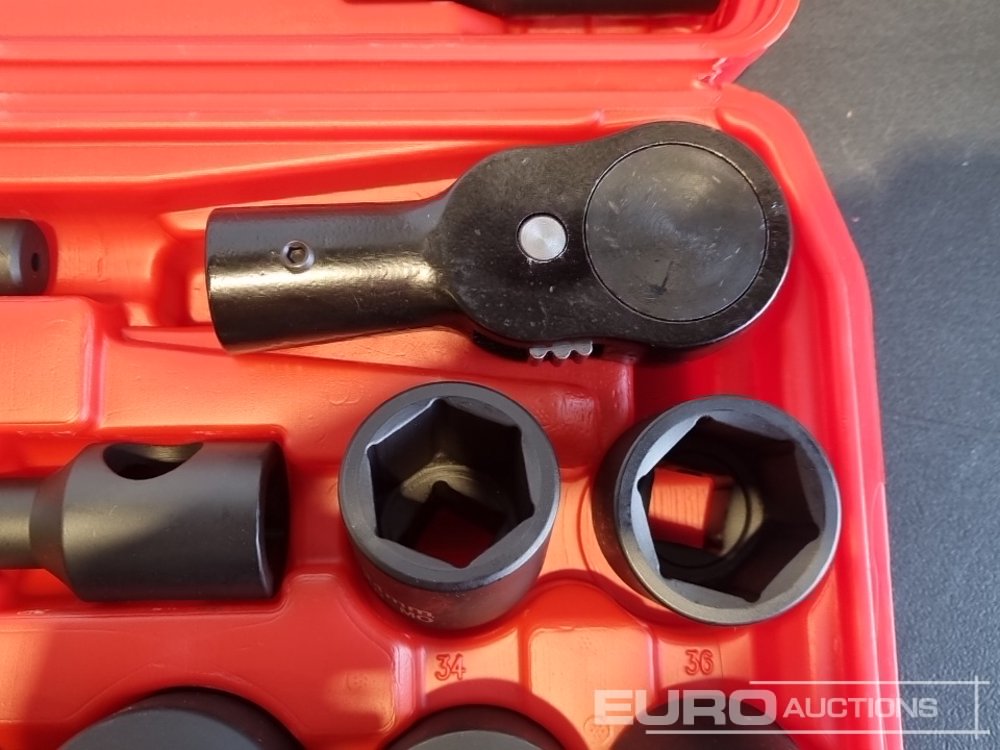 Unused Boss 3/4" 26pc Heavy Duty Pneumatic Socket Set, 4" Connecting Rod, 8" Connecting Rod Quick Ratchet Wrench, 20" Sliding Road, L Handle Sliding Head Extension Bar