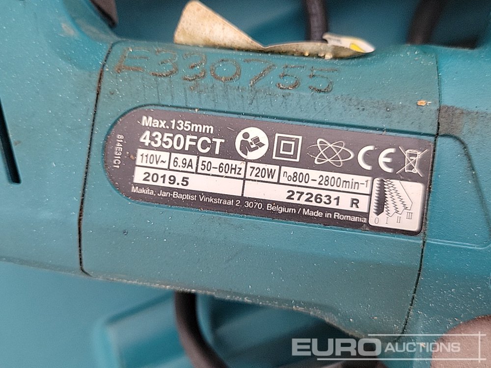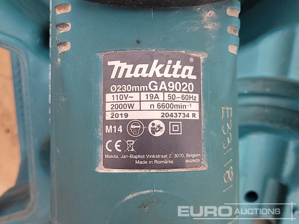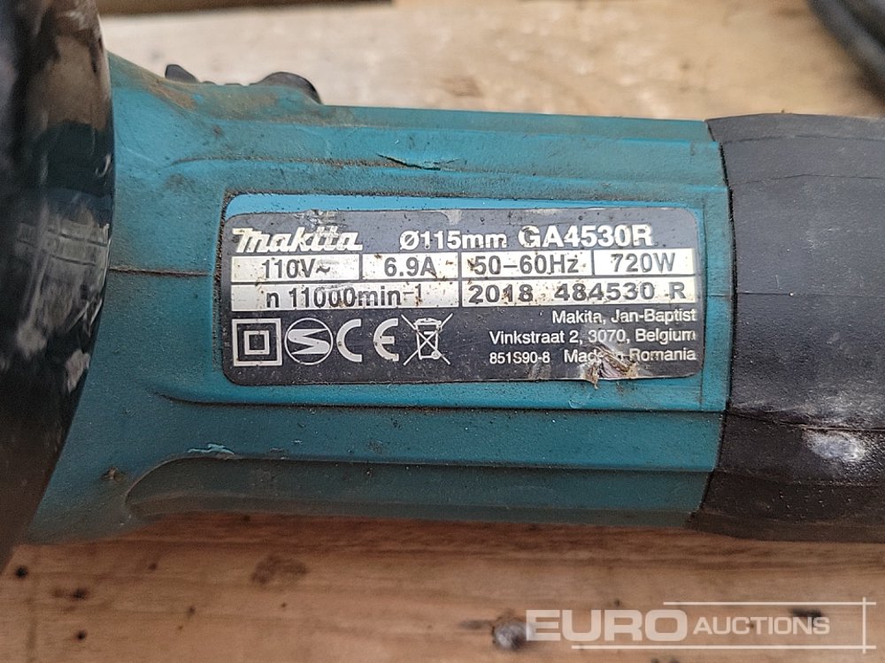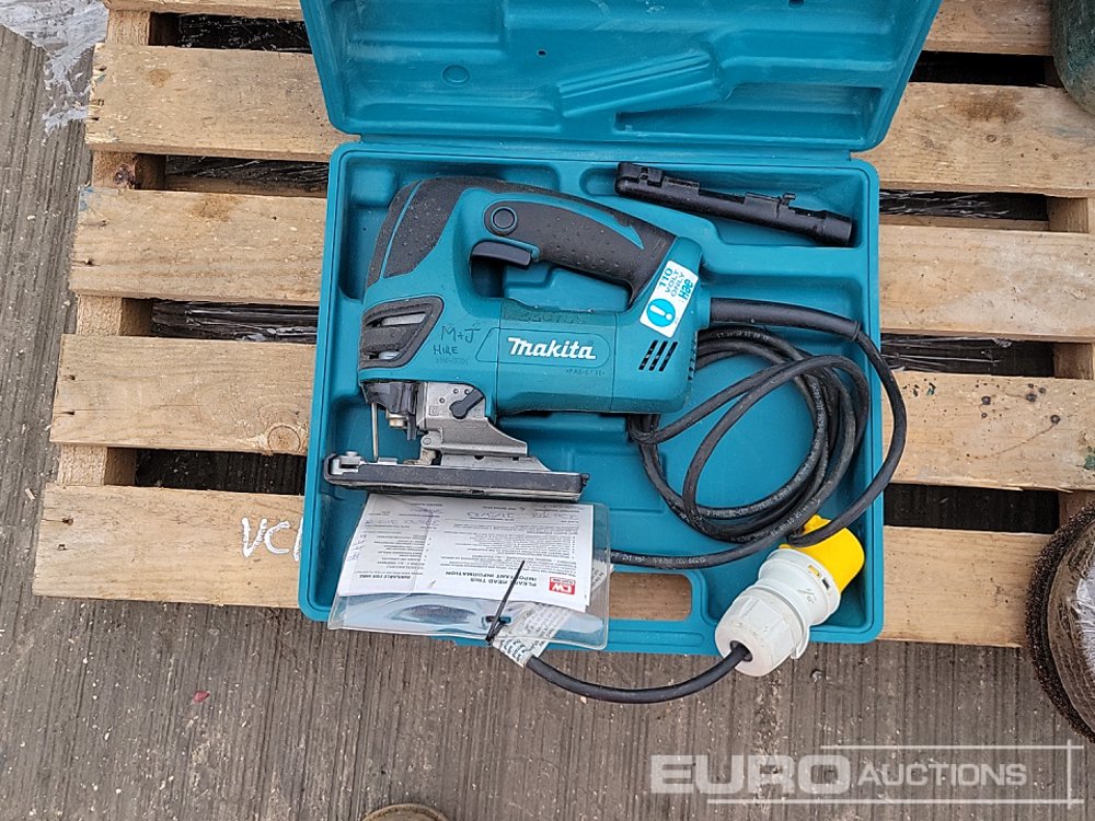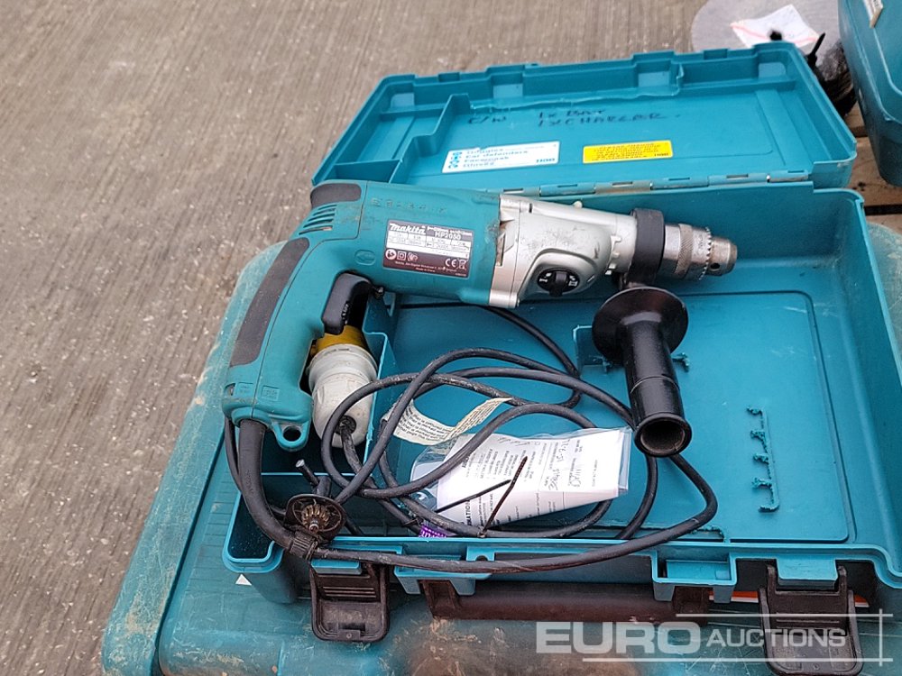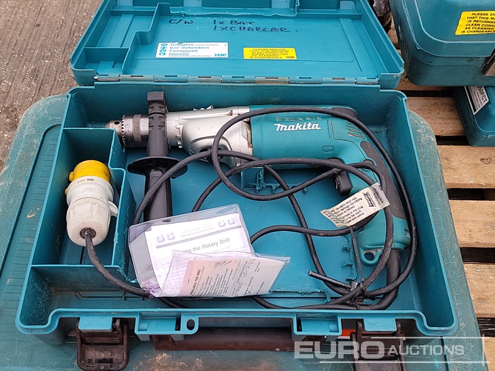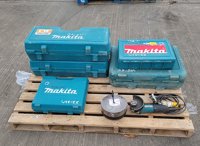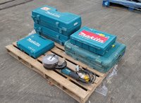 Makita HR3210C 110Volt Hammer Drill, GA9020 110Volt Angle Grinder (2 of), HP2050 110Volt Drill, 4350FCT 110Volt Jigsaw, GA4530R 110 Volt Angle Grinder