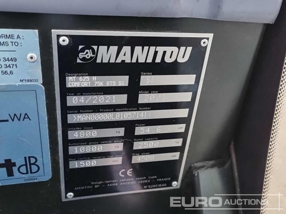 2021 Manitou MT625H Turbo Telehandler, Joystick Controls, QH, WLI, Forks - HJ21 YDP - MAN00000L01057141