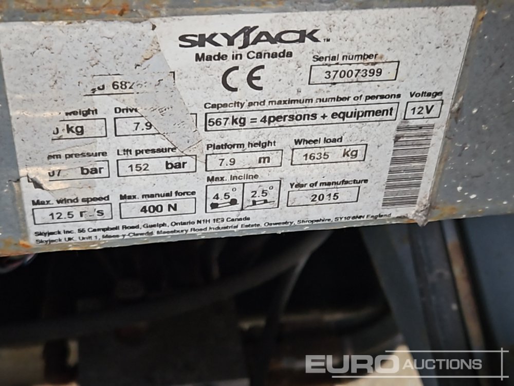 2015 SkyJack SJ6826RT 4x4 Diesel Scissor Lift, 9.9m Working Height, 567kg Platform Capacity, Extending Deck, Stabilisers - 37007399