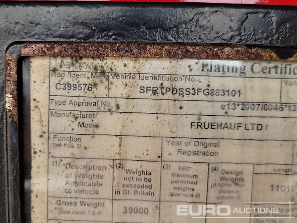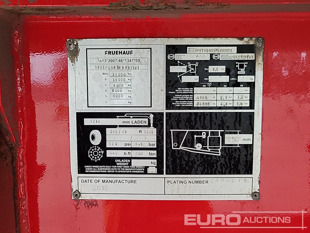 2015 Fruehauf Tri Axle Bulk Tipping Trailer, Easy Sheet