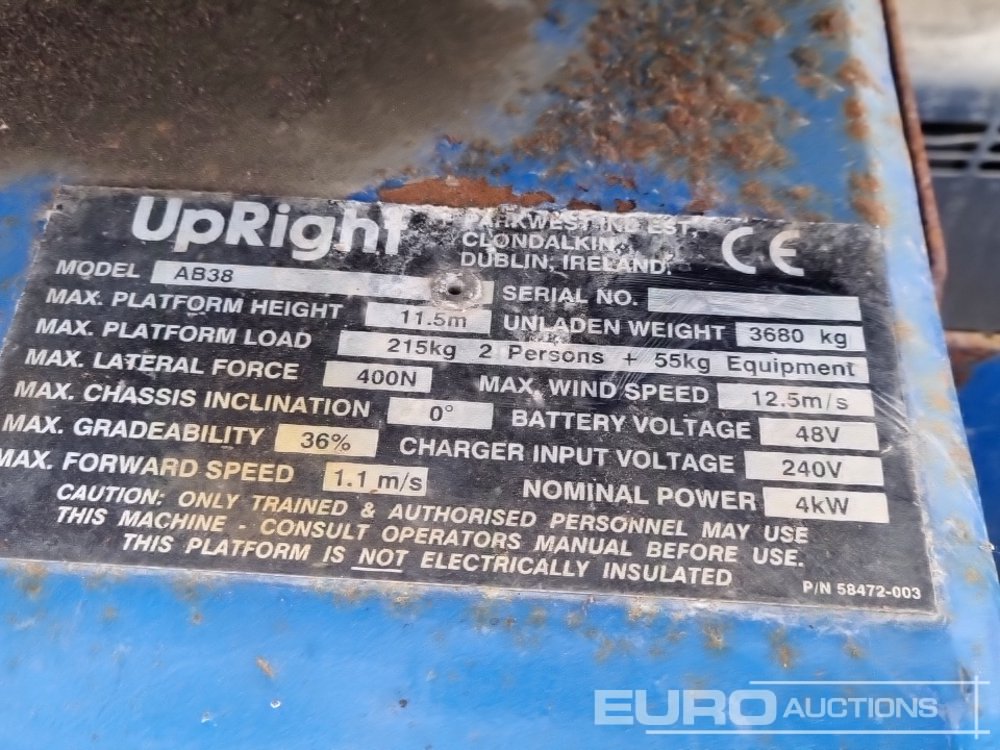 Upright AB38 Electric Articulated Boom Lift, 13.5m Working Height, 215kg Platform Capacity, Non Marking Tyres - 29992004