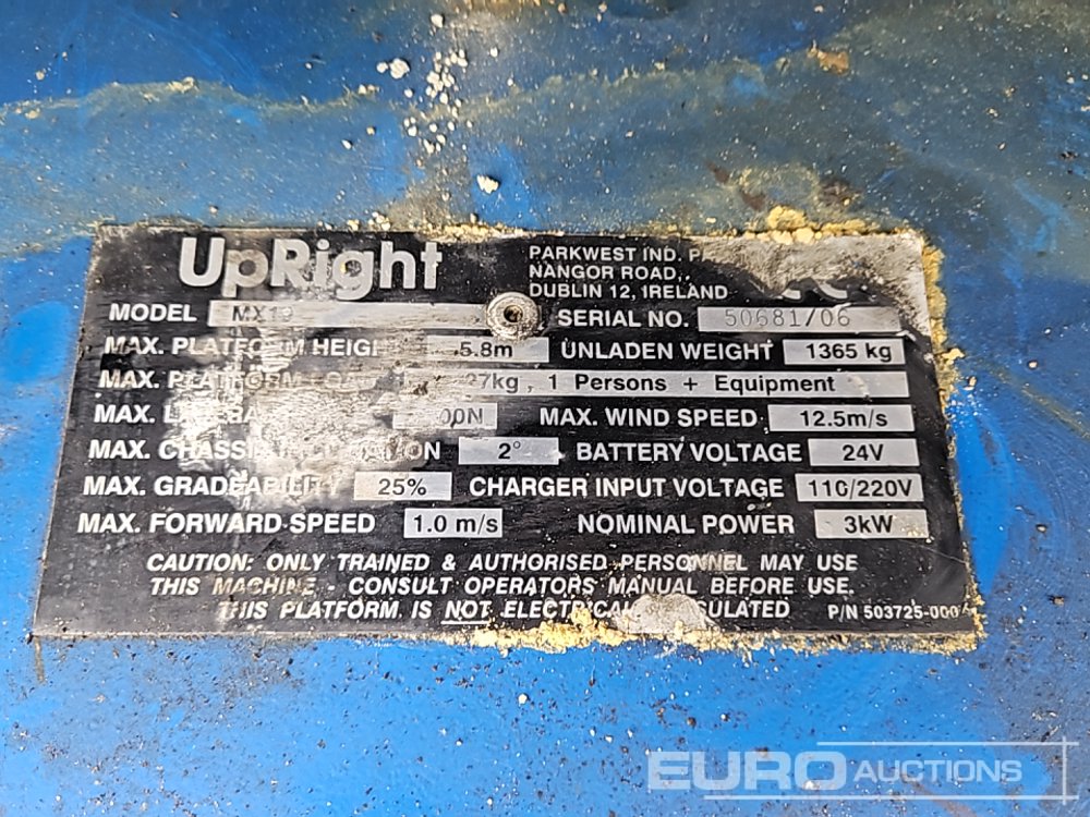 Upright MX19 Electric Scissor Lift, 7.8m Working Height, 227kg Platform Capacity, Extending Deck, Non Marking Tyres - 50681106