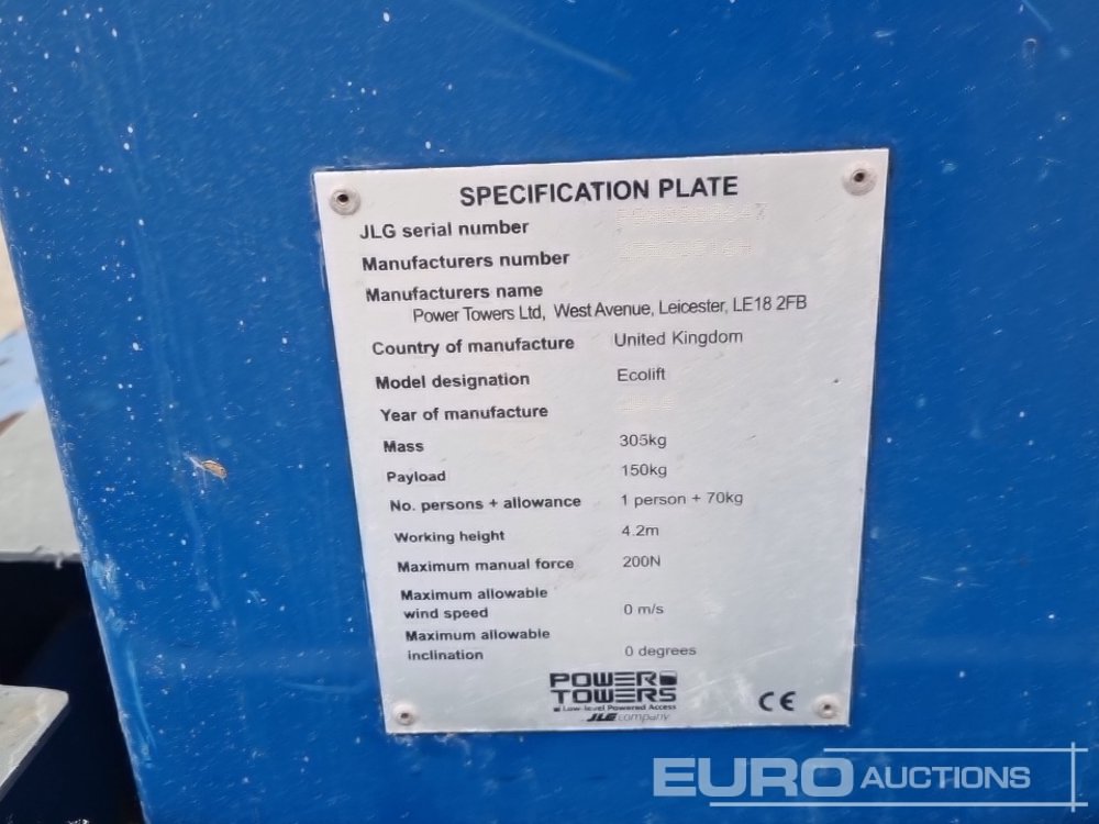2016 Power Towers Ecolift Push Around Vertical Lift, 3.5m Working Height 150kg Platform Capacity - P900000647