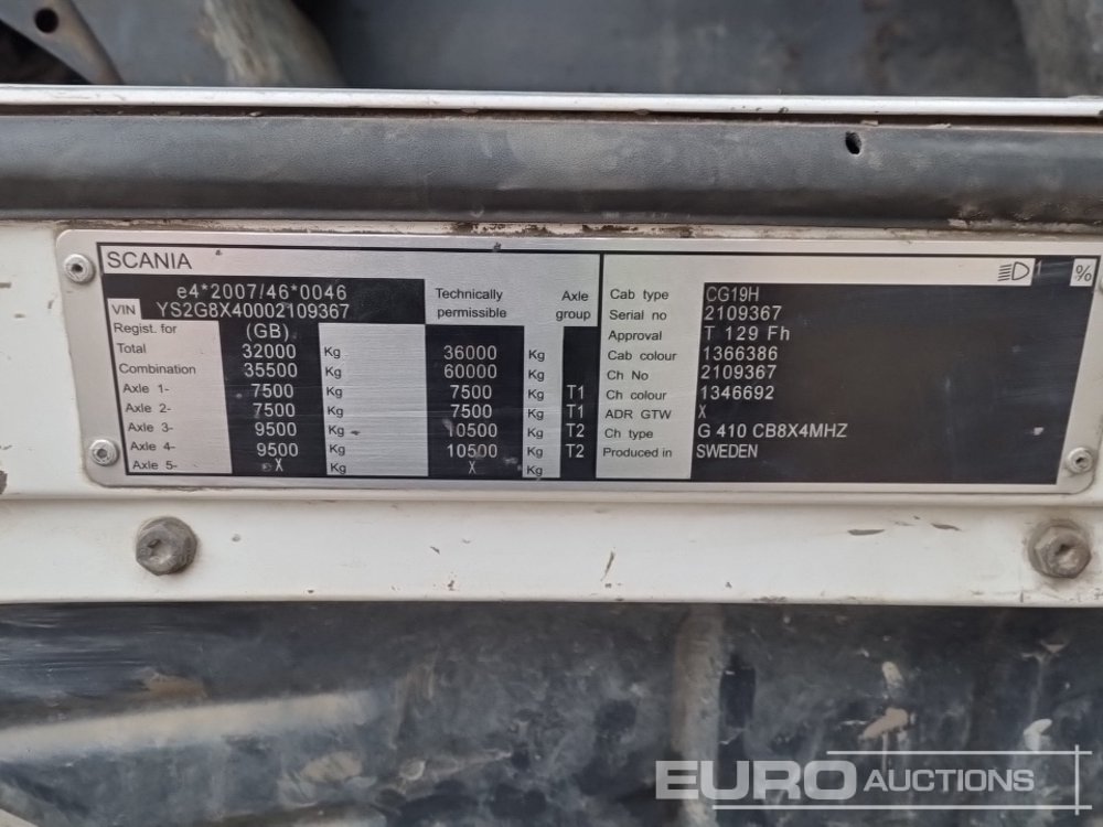 2015 Scania G410 8x4 Tipper Lorry, Insulated Weightlifter Body, Easy Sheet, 360 Camera, WLI, A/C, Automatic Gearbox (Reg. Docs. Available, Tested 02/26) - NK15 ZSE - YS2G8X40002109367