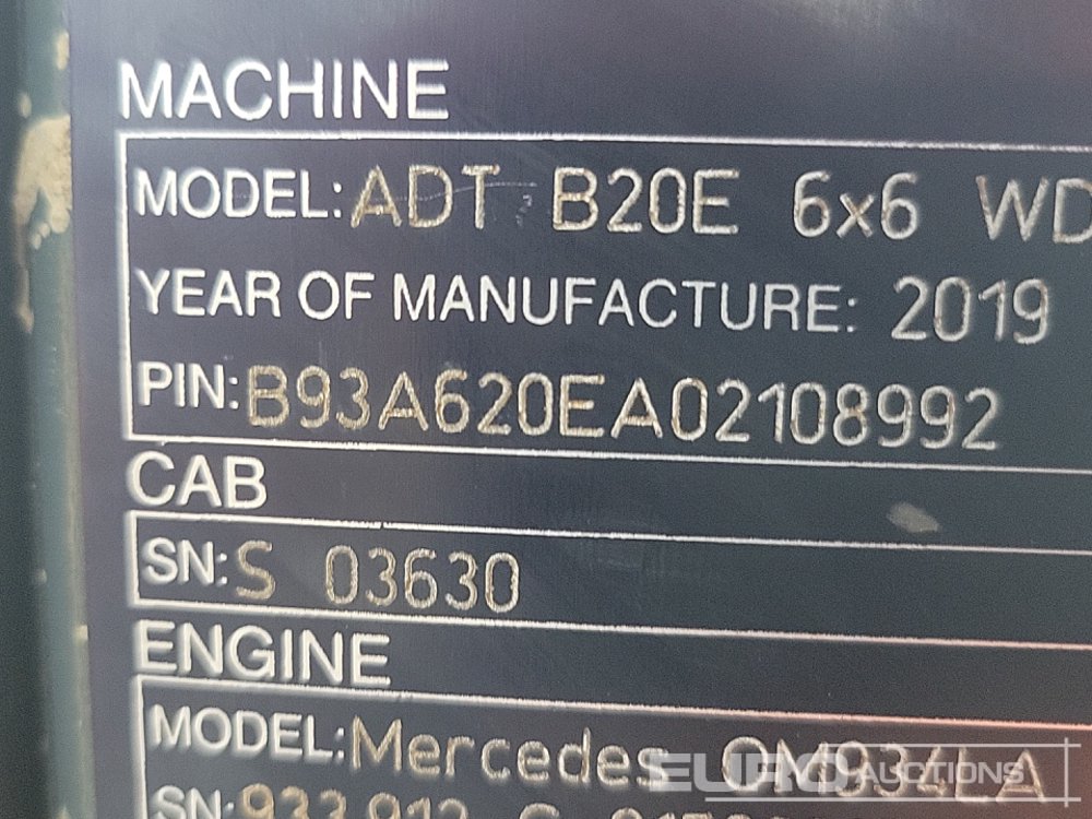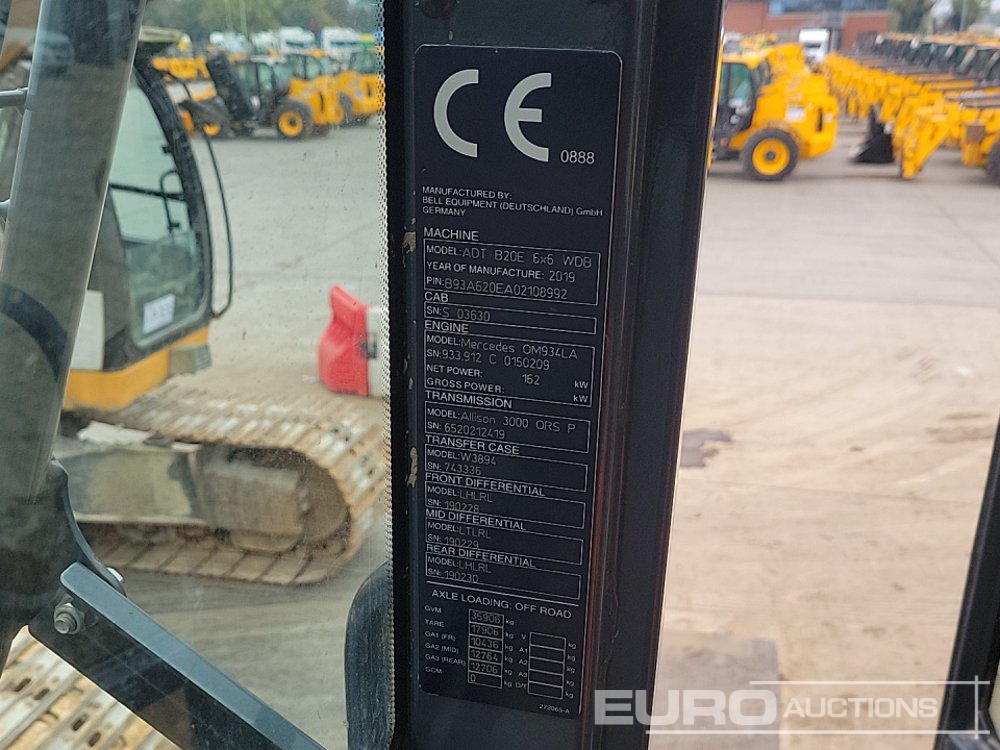 2019 Bell B20E 6x6 Articulated Dumptruck, Reverse Camera, A/C - B93A620EA02108992