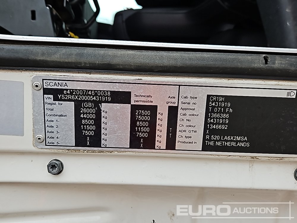 2016 Scania R520 6x2 Rear Lift, 3 Way Camera, A/C, Automatic Gearbox (Tested 11/25) - EU66 WZF - YS2R6X20005431919