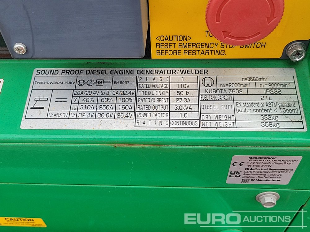 2023 Shindaiwa 310A Single Axle Welder Generator, Kubota Engine (Meter Reading: 766 Hours) - W04101000051