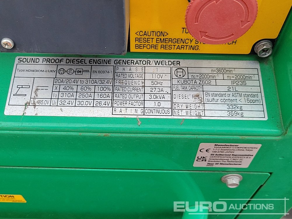 2022 Shindaiwa 310A Single Axle Welder Generator, Kubota Engine (Meter Reading: 499 Hours) - W04101000026