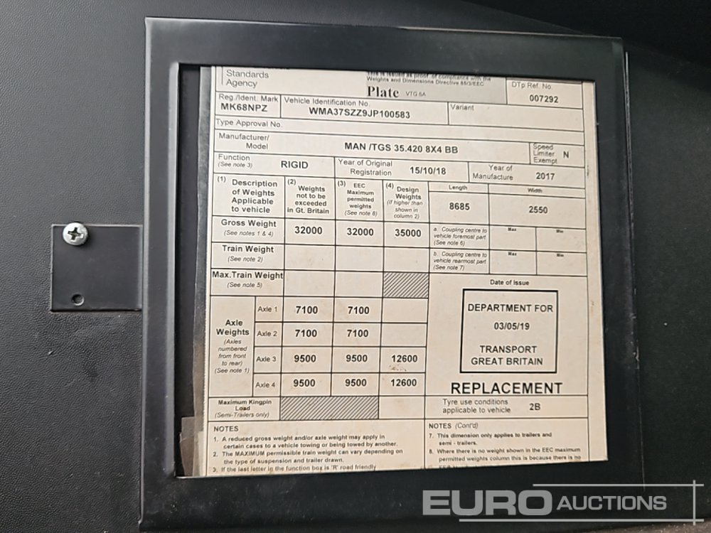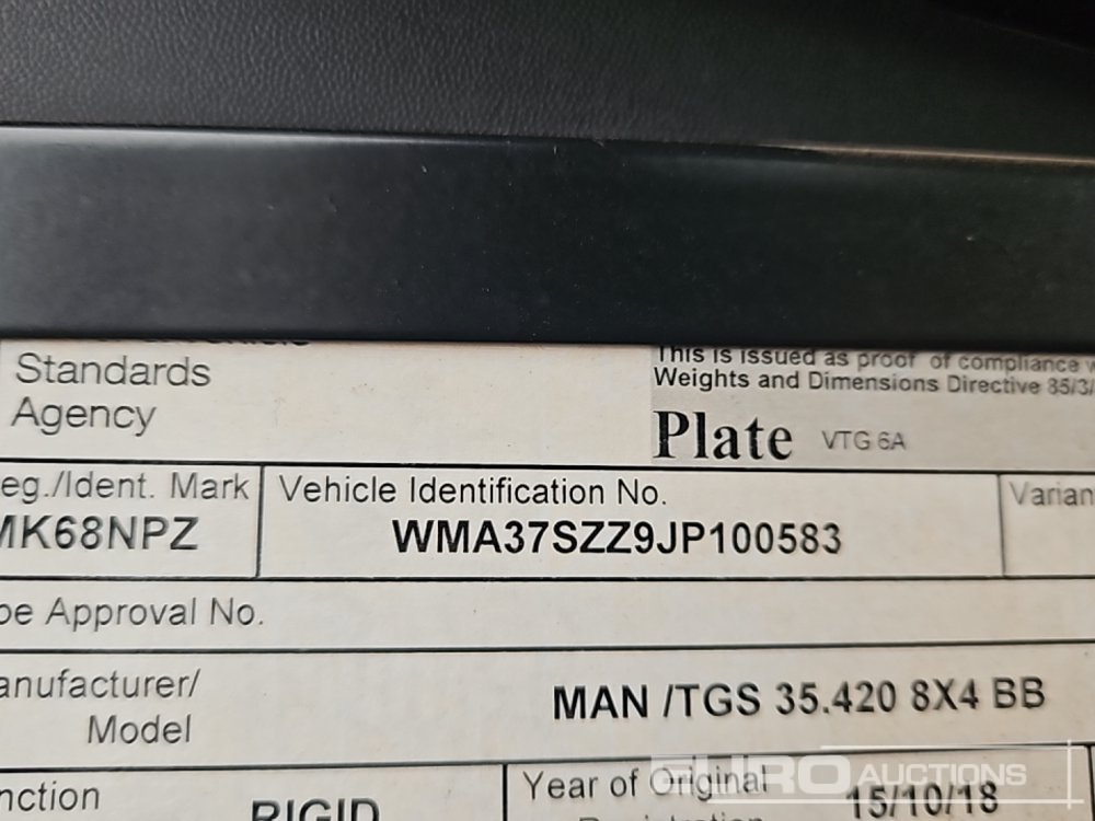 2018 MAN TGS35.420 8x4 Tipper Lorry, Thompsons Body, Easy Sheet, WLI, A/C, Automatic Gearbox (Reg. Docs. Available) - MK68 NPZ - WMA37SZZ9JP100583