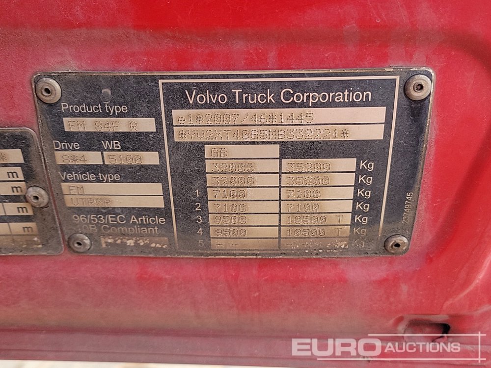 2021 Volvo FMX500 Euro 6, 8x4 Tipper Lorry, Townend Body, Easy Sheet, Reverse Camera, WLI, A/C, Automatic Gearbox (Reg. Docs. & Plating Certificate Available, Tested 03/27) - YL70 CWG - YV2XT40G5MB332221