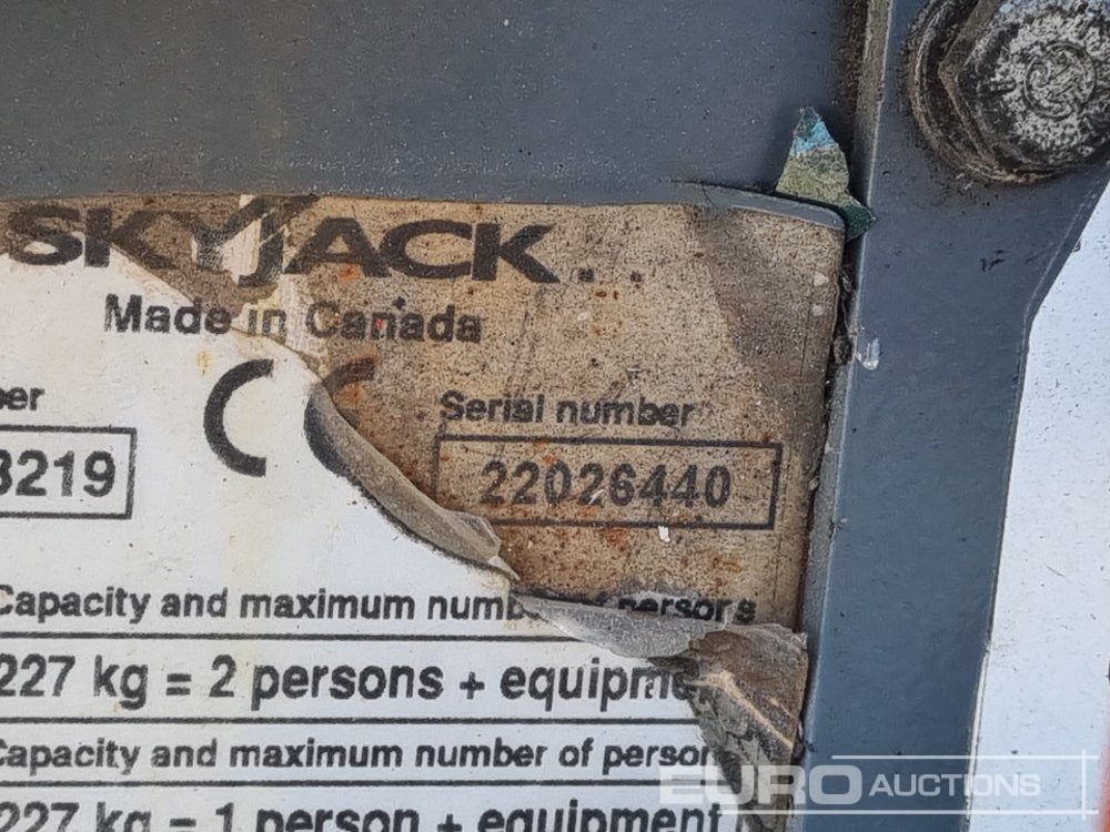 2011 SkyJack SJII-3219 Electric Scissor Lift, 7.8m Working Height, 227kg Platform Capacity, Extending Deck, Non Marking Tyres - 22026440