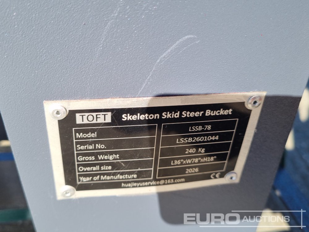 Unused 2026 Toft LSSB-78 78" Rock Bucket to suit Skidsteer Loader (Declaration of Conformity Available) - LSSB2601044