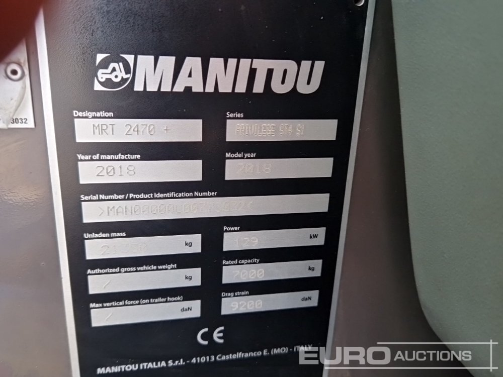 2018 Manitou MRT2470 Turbo Roto Telehandler, Joystick Controls, Stabilisers, QH, WLI, A/C, Forks - AY18 GXW - MAN00000C00773032