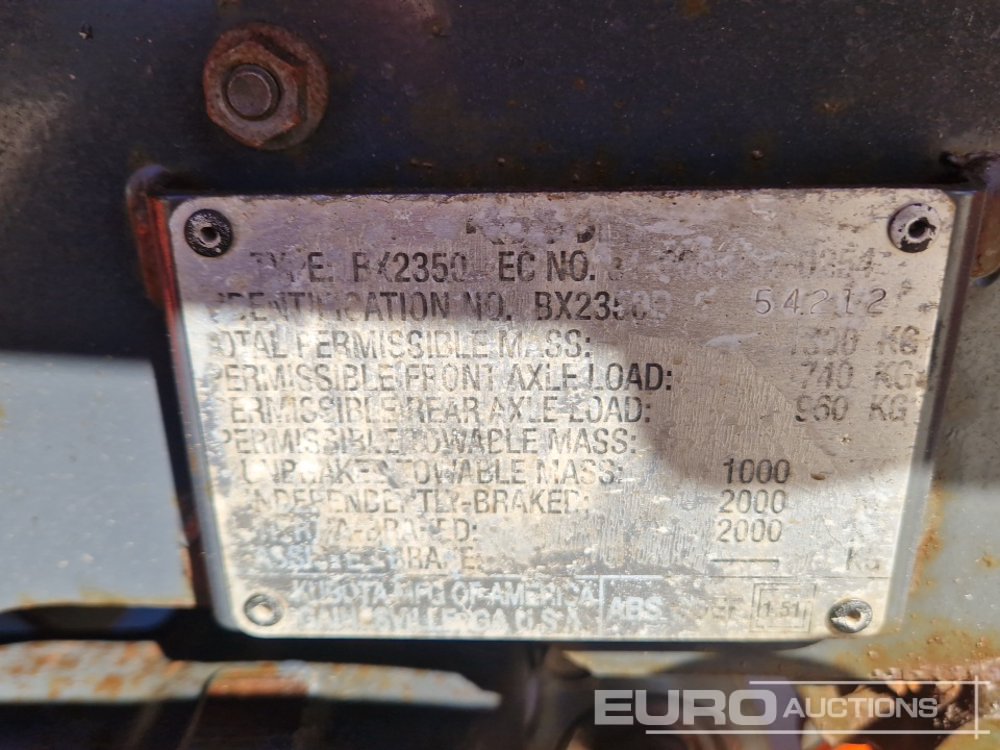 Kubota B2350 4WD Compact Tractor, Front Loader, Cutting Deck, 2 Spool Valves - BX2350D54212