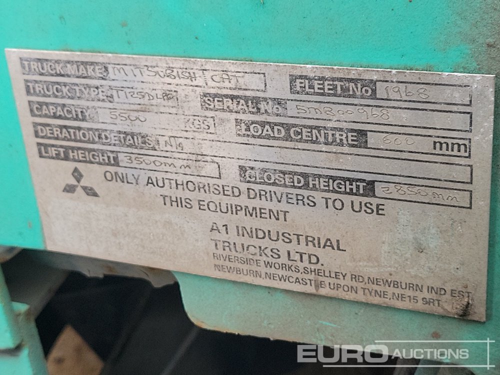 Mitsubishi T125D Gas Forklift, 2 Stage Mast, Forks (Non Runner) - 5MB00968