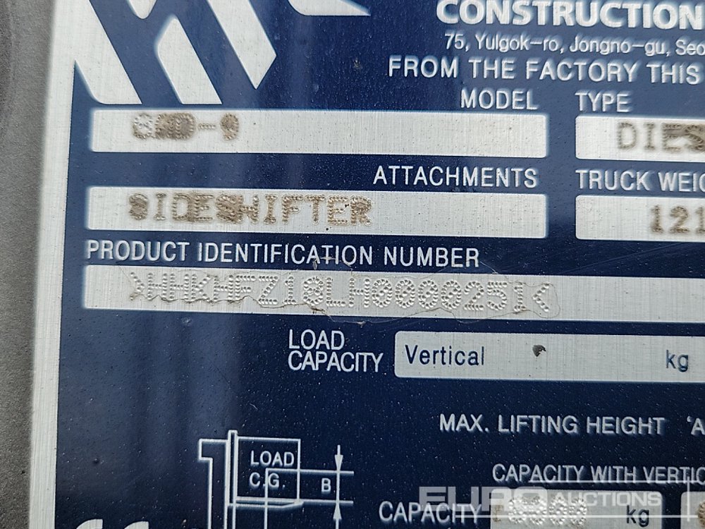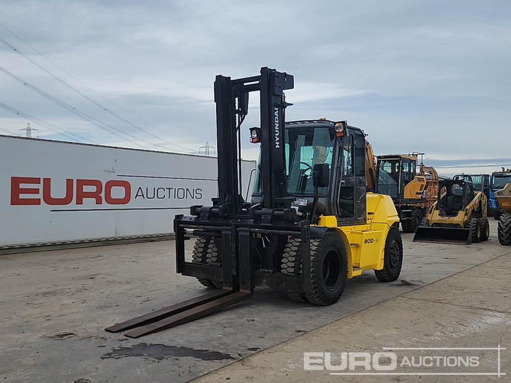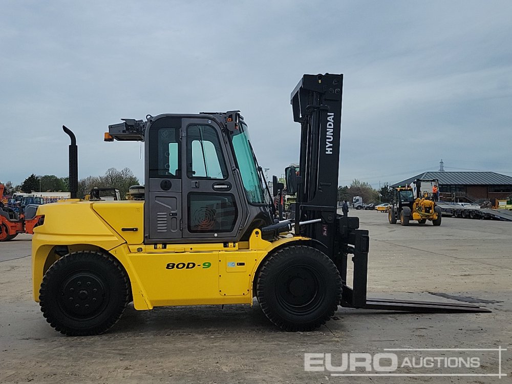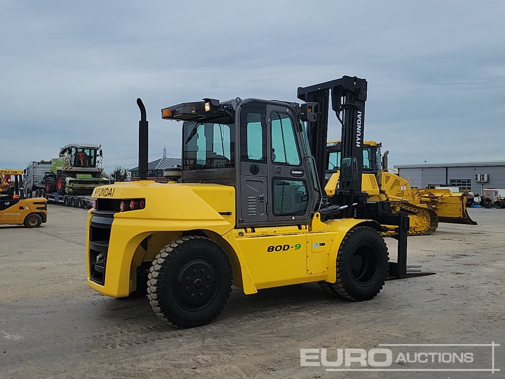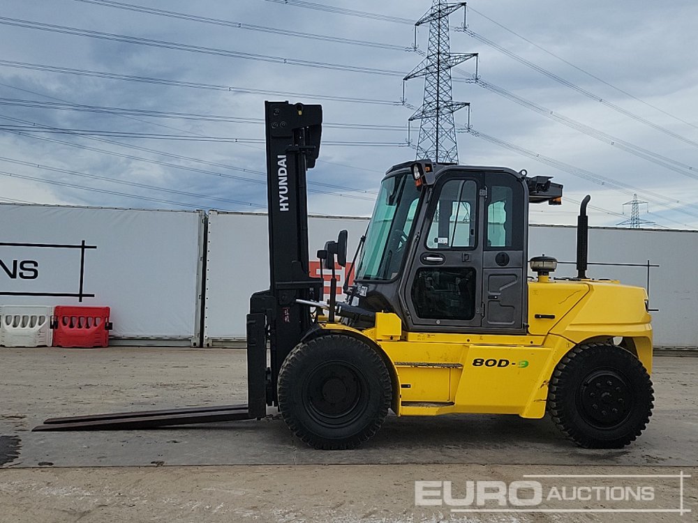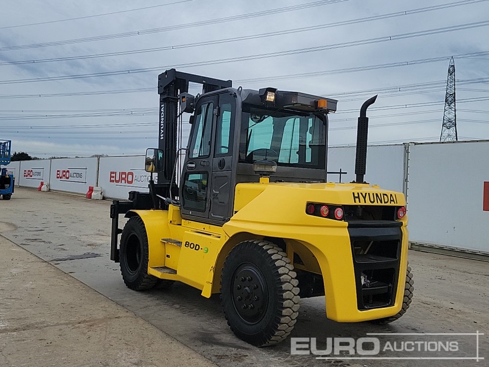 2017 Hyundai 80D-9 Diesel Forklift, 2 Stage Mast, Side Shift, A/C, Full Cab, Forks - HHKHFZ18LH0000251