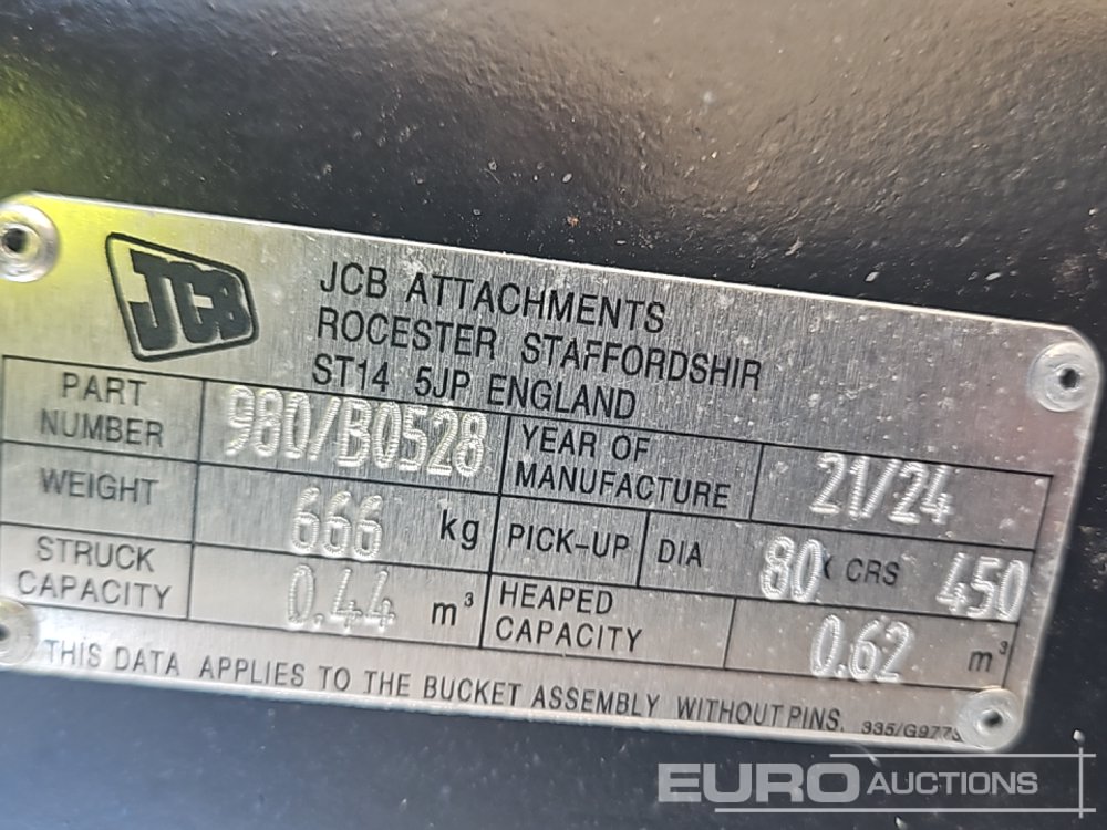 Unused JCB 36" Digging Bucket 80mm Pin to suit 20 Ton Excavator