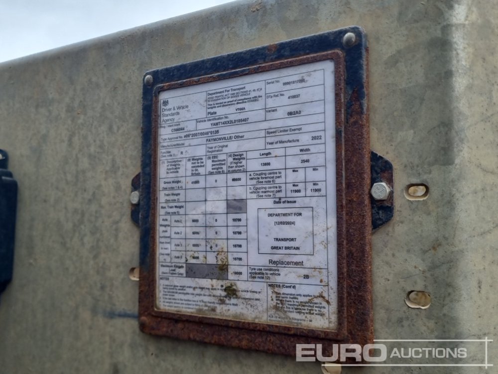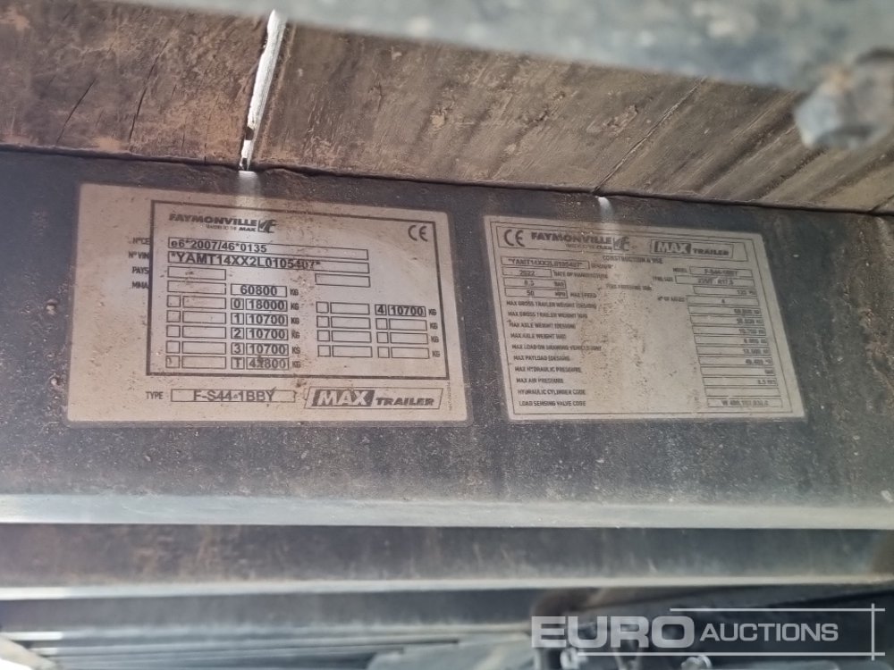 2022 Faymonville 4 Axle Stepframe Low Loader Trailer, Out Riggers, Hydraulic Fliptoe Ramps, 2 Rear Steer Axles (Plating Certificate Available, Tested 01/27)