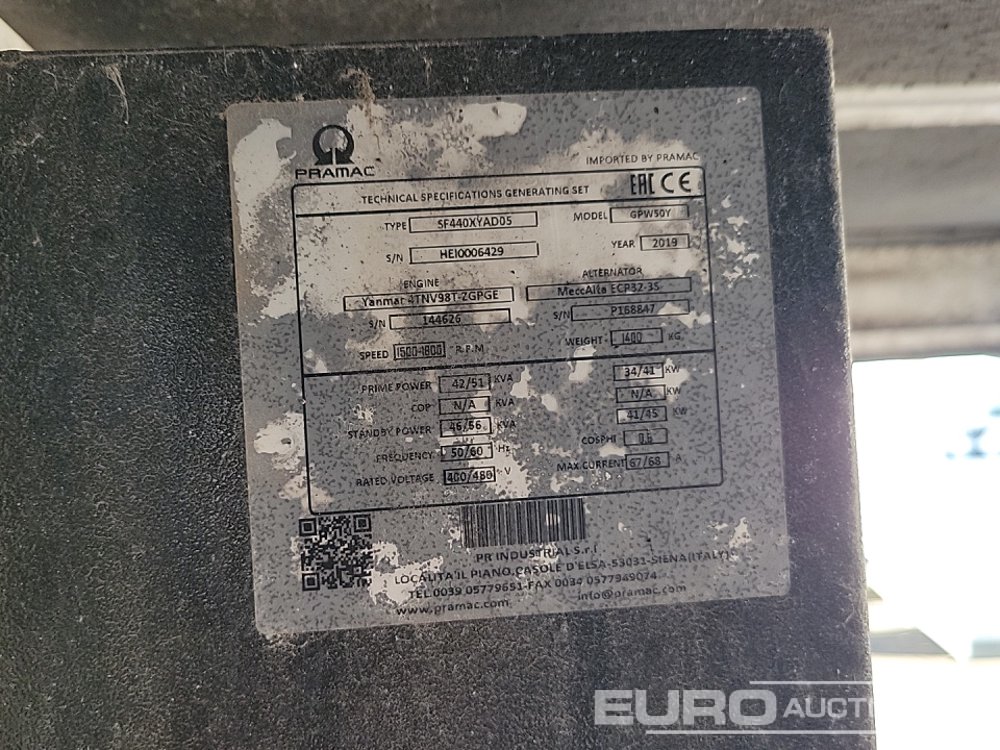 2019 Pramac GPW50Y 50kVA Generator, Yanmar Engine - HE10006429