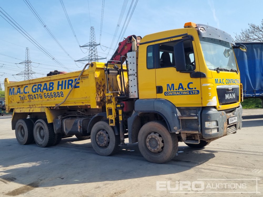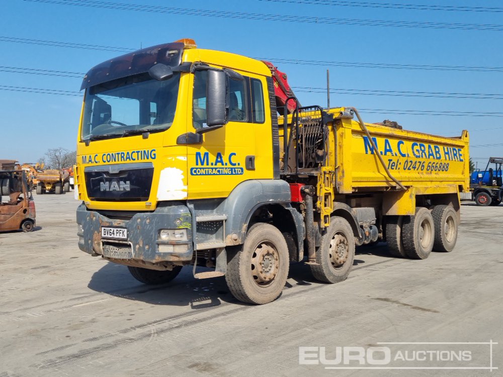MAN TGX 35.400 8x4 Tipper Grab Lorry, Palfinger M125L Loading Crane, Hydraulic Rotating Clamshell Bucket, Thompsons Body, Easy Sheet, Reverse Camera, A/C, Manual Gearbox - BV64 PFK - WMA37SZZ3EM653382